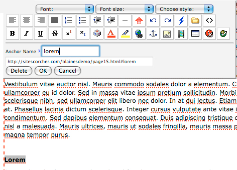 2.) Next enter in the name of the anchor you are creating: (this should be the same text as what you highlighted)